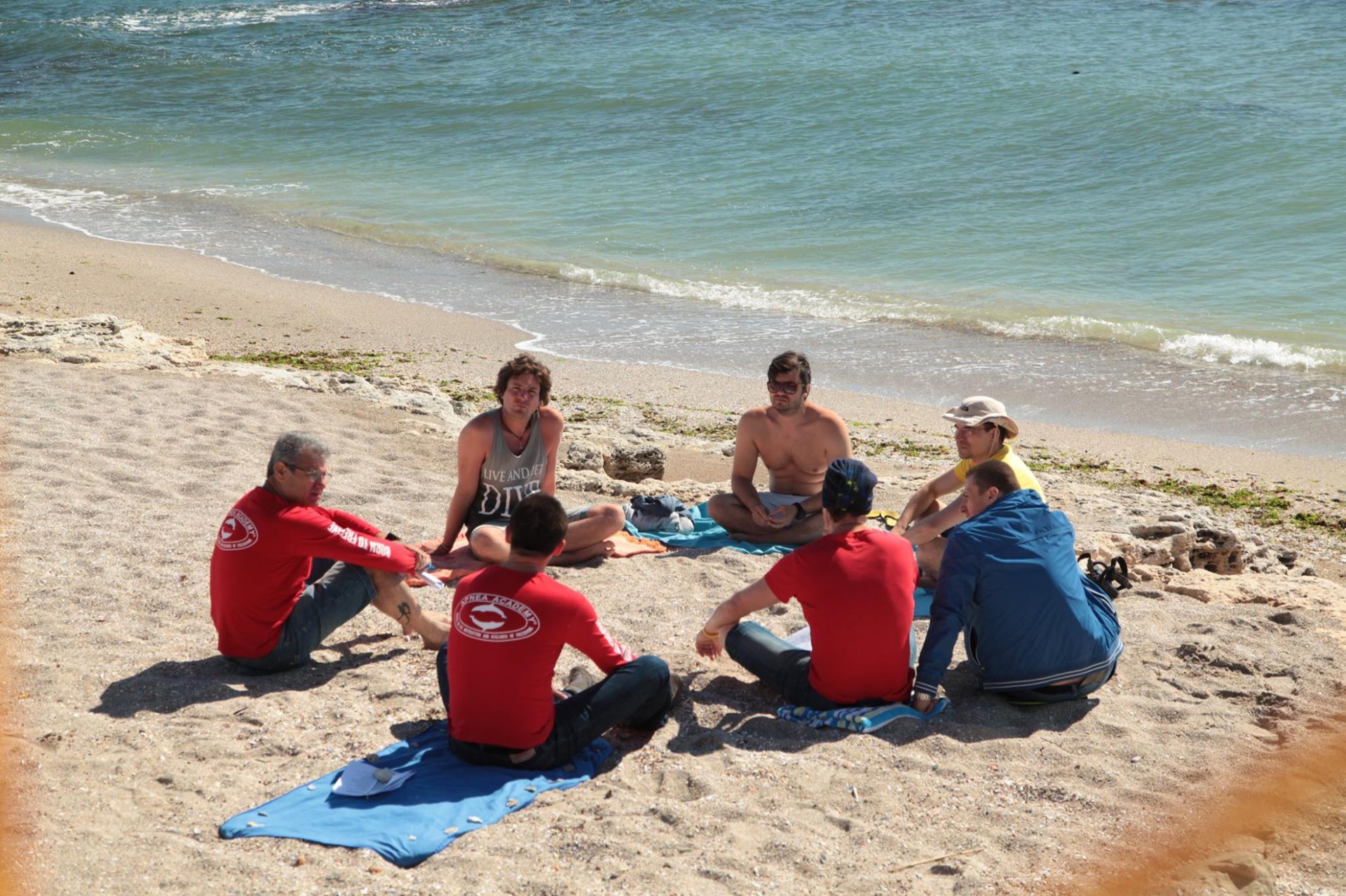 Transferul de cunostinte prin discutii libere urmate de punerea in practica. In imagine studenti Level 1 la Marea Neagra.